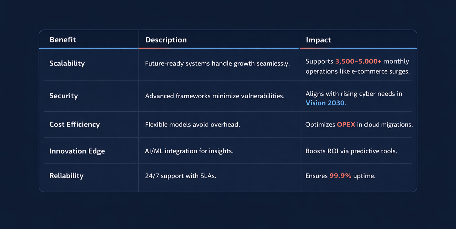Ajnihat Alnajah provides comprehensive managed IT services to optimize enterprise operations and ensure reliable, secure performance across Saudi Arabia’s competitive market.